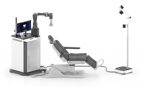 索立德脑控医疗公司研发的“灵豚”是一款采用多自由度支臂、高精度光学定位、多模态医学影像和智能操作系统的经颅磁全自动靶向定位产品。通过CHINGMU(青瞳视觉)高精度光学动捕系统,保证机械臂精准针对大脑区域进行持续性精准治疗,治疗效果达到90%以上,受到美国同行业以及行业泰斗的深度认可。该产品为临床及科研实现经颅磁全自动精准定位和诊疗提供解决方案,已入驻国内多家科研和医疗机构,广泛应用于精神科、神经科、康复科等领域。
