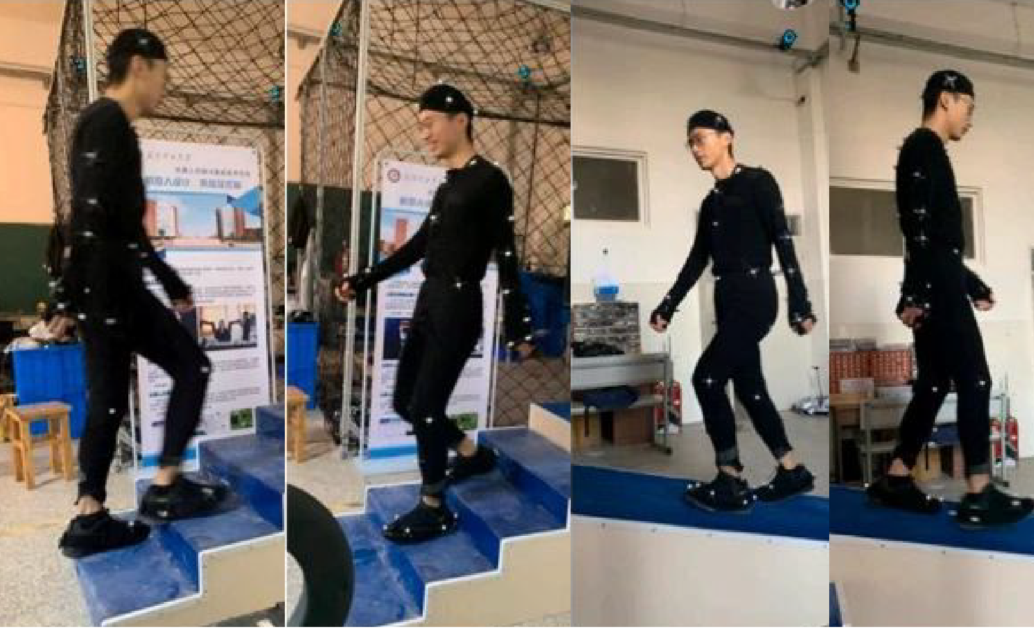 在实验验证环节,团队依托青瞳视觉(CHINGMU)光学动作捕捉系统搭建真实运动数据采集平台。该系统以亚毫米级定位精度、高帧率数据采集能力,实时采集11名受试者在平地行走、坐、站立、上下楼梯、上下坡等7种典型日常动作中的真实运动数据,为算法训练与验证提供可靠数据支撑。
