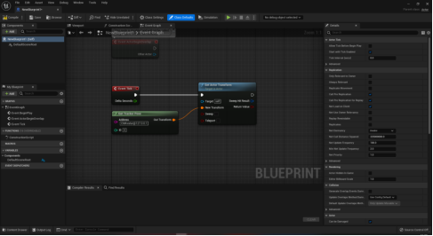 创建道具蓝图,在蓝图中添加道具模型、粒子特效或者相机。在EventGraph内点击鼠标右键搜索并创建GetTrackerPose节点,设置节点的服务器地址和刚体ID属性(Avatar大纲页签中刚体ID信息)。在Tick事件内添加SetActorTransform或者是对应组建的SetRelativeTransform节点,并将两个节点的Transform接口相连,点击编译保存后将道具蓝图拖到场景中运行。如图3-1所示。