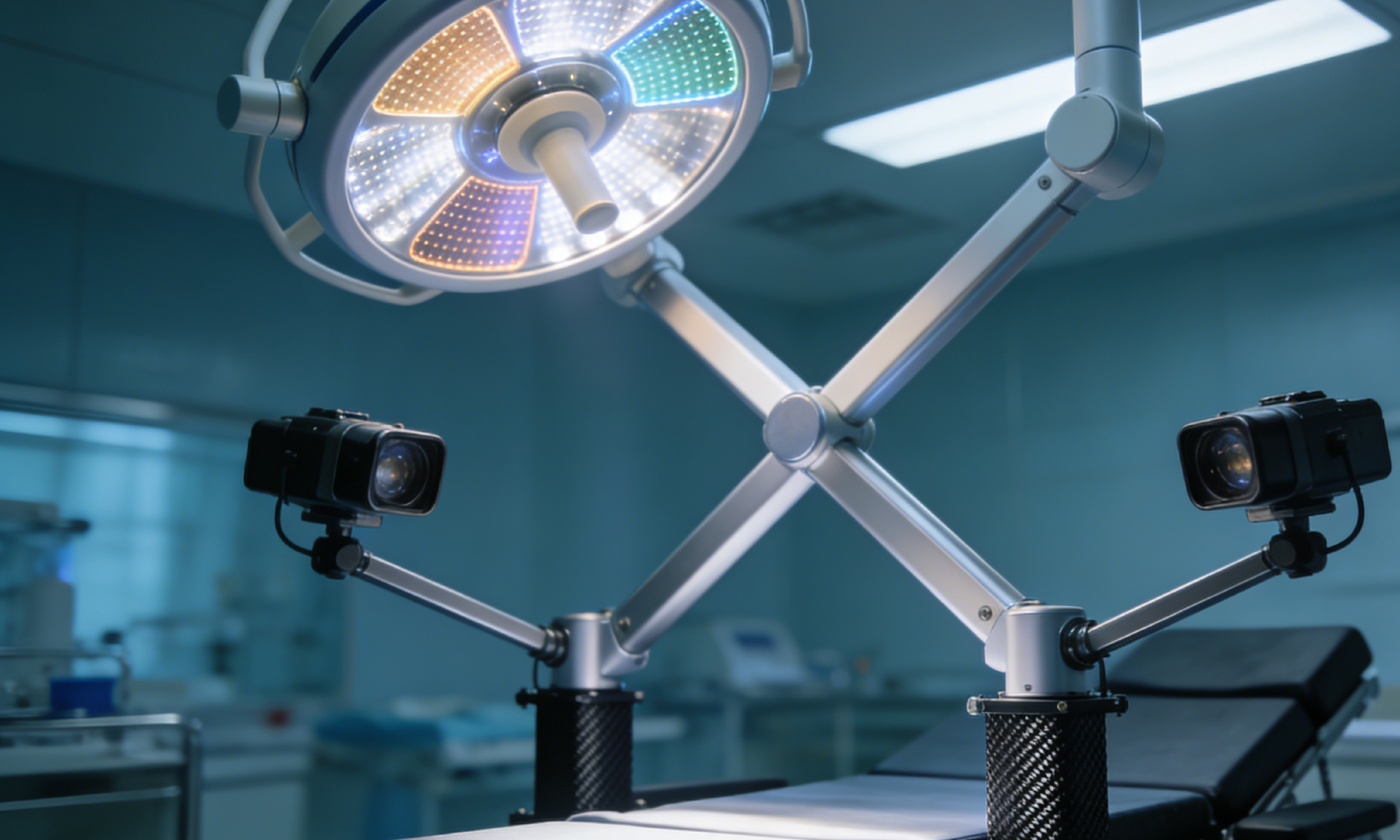 医疗级抗干扰性能系统针对复杂手术室环境进行强化设计,通过光学滤波片阻断手术无影灯特定波段干扰;采用碳纤维等非金属靶标基座规避电磁影响;双相机交叉覆盖的布局可消除单目视觉盲区,确保在部分遮挡或特殊体位下信号的持续稳定。