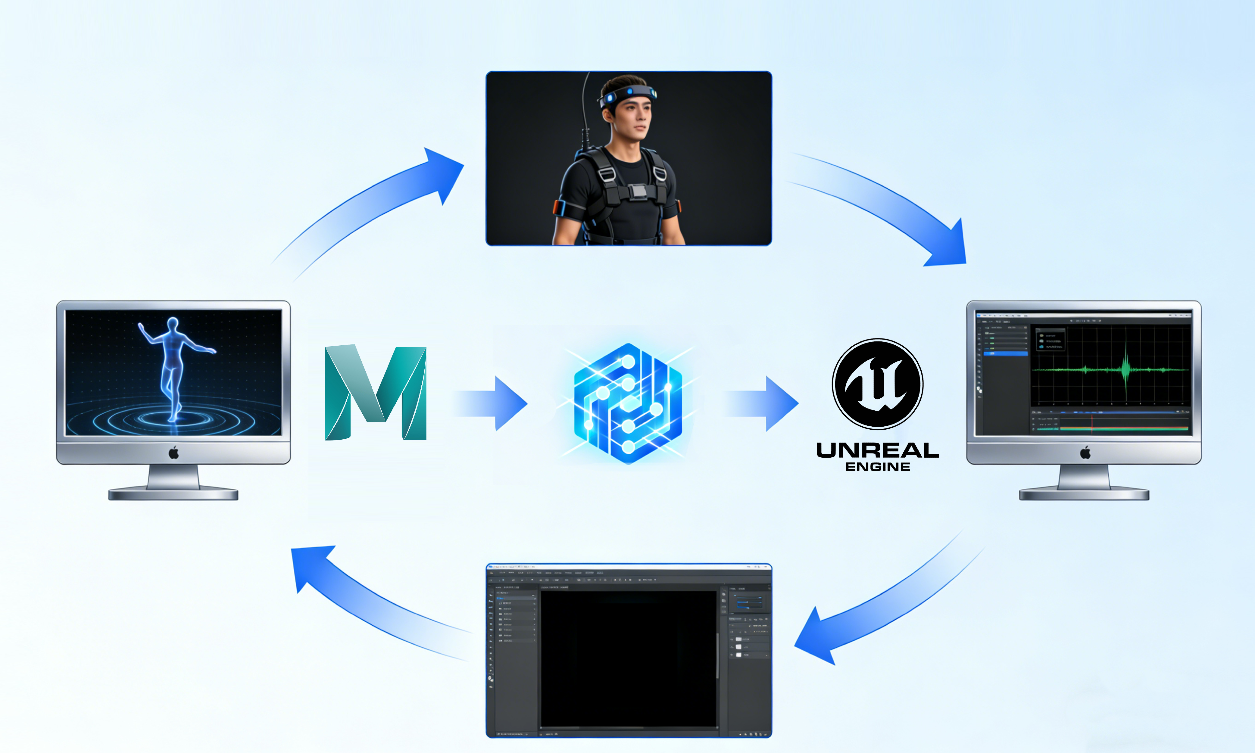全流程闭环,数据无损流转提供从预演、动捕、修复到引擎导入的一站式服务。通过自研中间件,实现Maya/Unreal等平台间数据无缝对接,杜绝多环节外包常见的数据损耗与格式冲突问题。