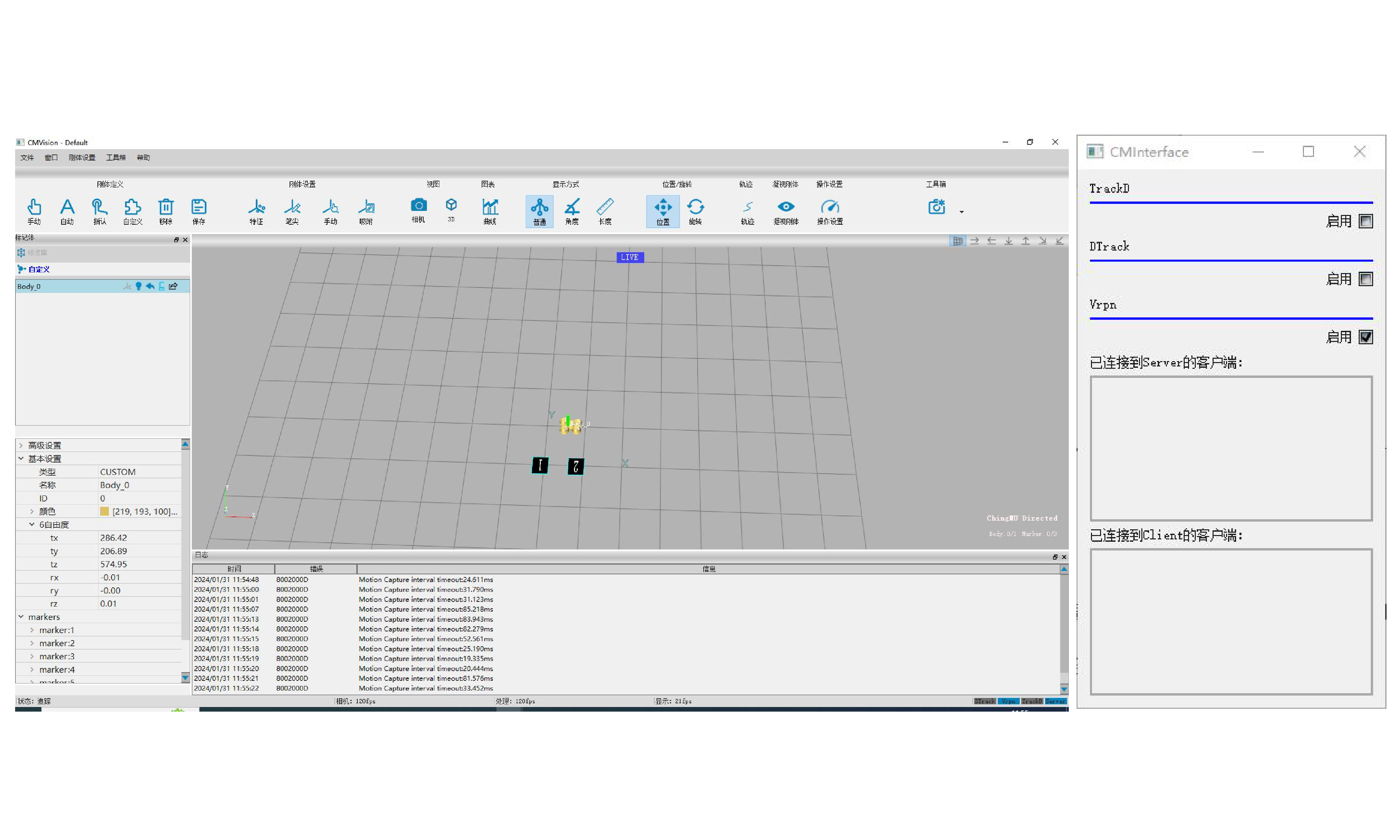 CMVison 高精度光学追踪系统是一款功能强大的光学追踪软件,为VR、工业机器人、手术导航和医疗康复等领域提供专业级运动追踪解决方案。通过与D系列相机(Rigor、Smart、Nano)等硬件设备配合使用,CMVision能够实现对各类刚体的精确追踪、分析和管理,满足专业用户的严苛需求。